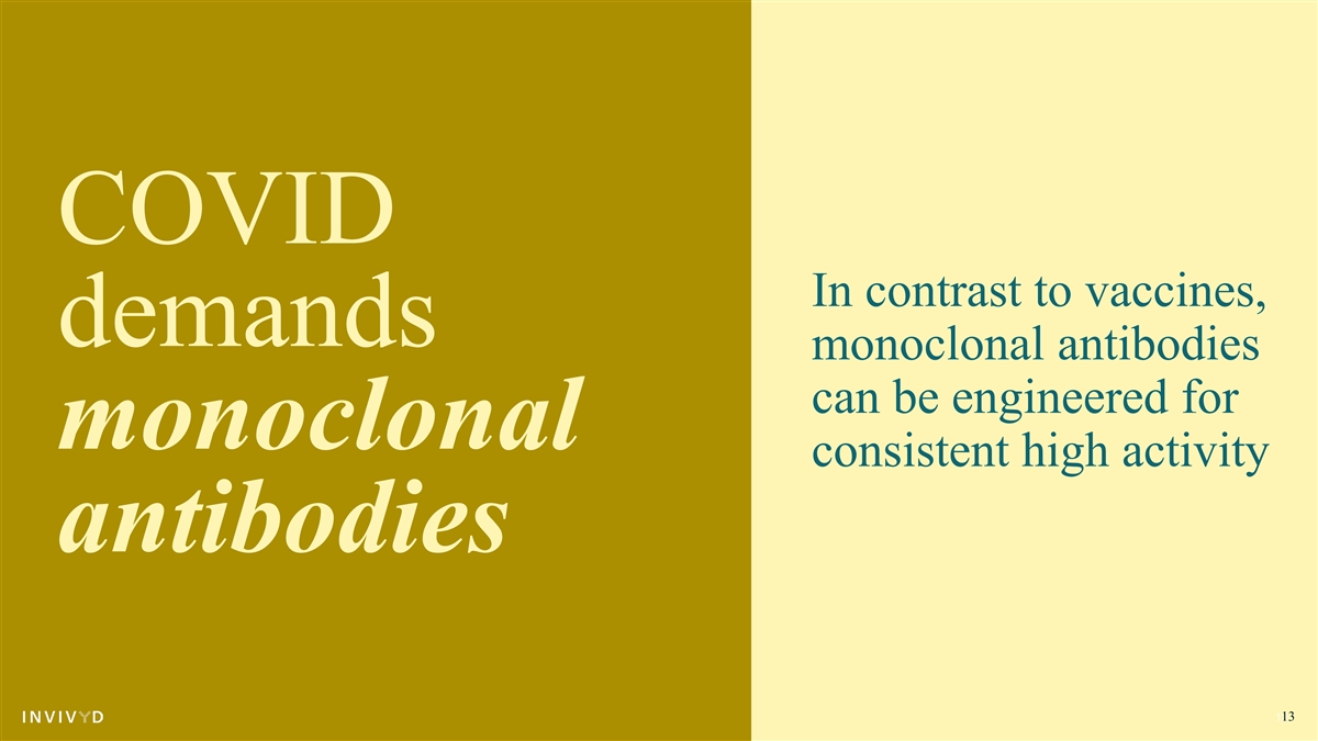 COVID In contrast to vaccines, demands monoclonal antibodies can be engineered for monoclonal consistent high activity antibodies 13 13