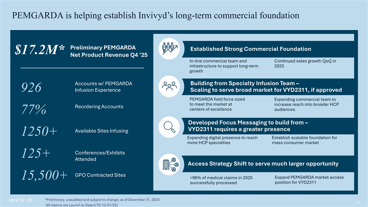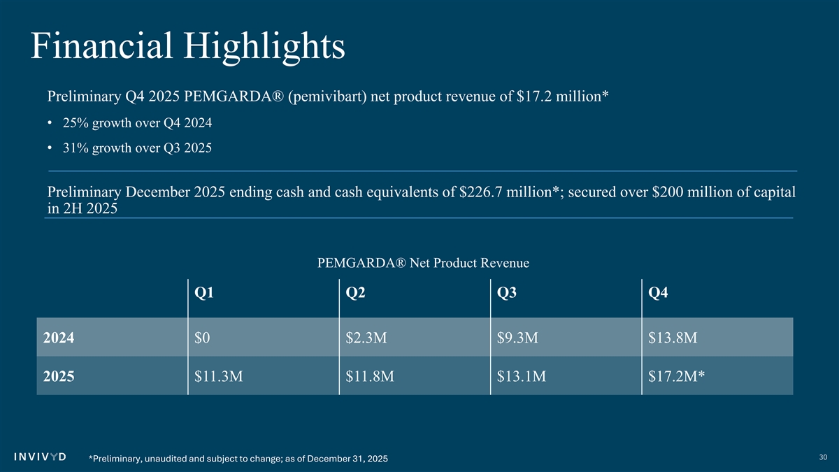 | | Preliminary Q4 2025 PEMGARDA® (pemivibart) net product revenue of $17.2 million, representing 25% growth year-over-year and 31% growth quarter-over-quarter |