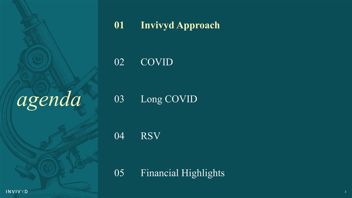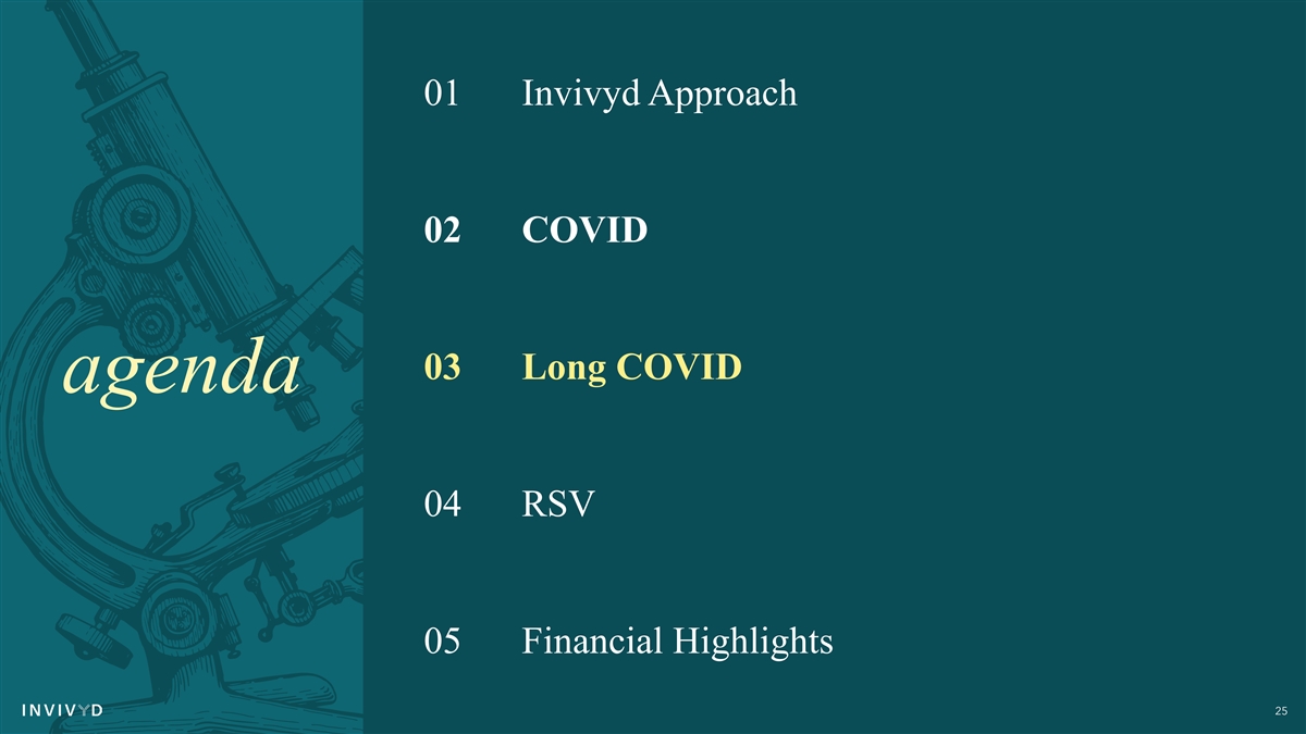 01 Invivyd Approach 02 COVID 03 Long COVID agenda 04 RSV 05 Financial Highlights 25