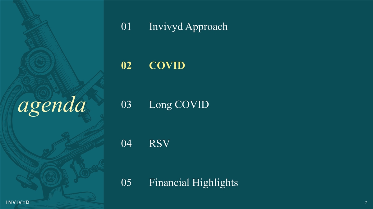 01 Invivyd Approach 02 COVID 03 Long COVID agenda 04 RSV 05 Financial Highlights 7