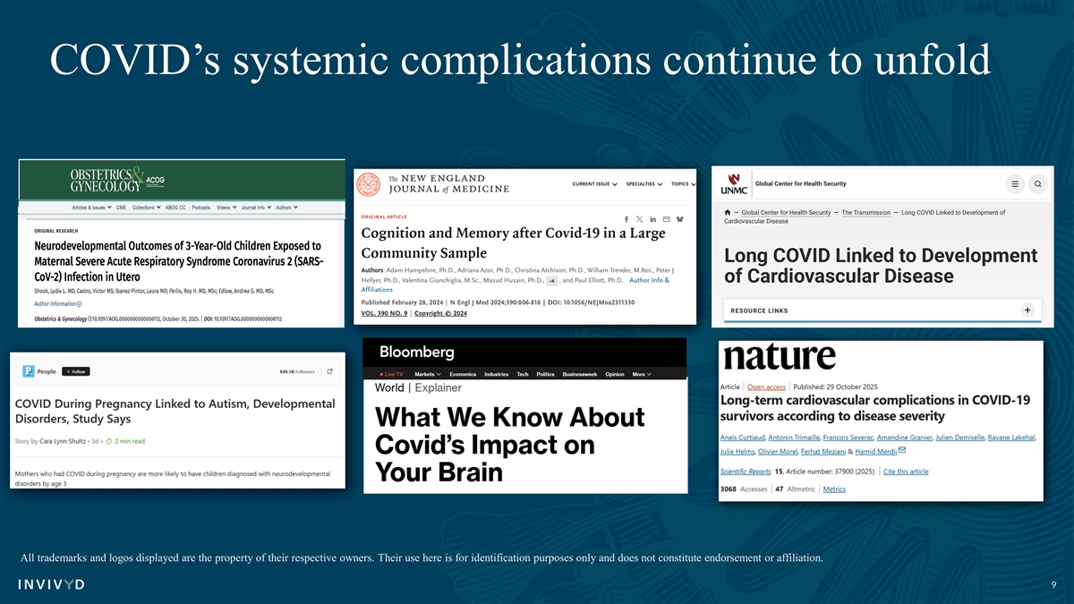 COVID’s systemic complications continue to unfold All trademarks and logos displayed are the property of their respective owners. Their use here is for identification purposes only and does not constitute endorsement or affiliation. 9