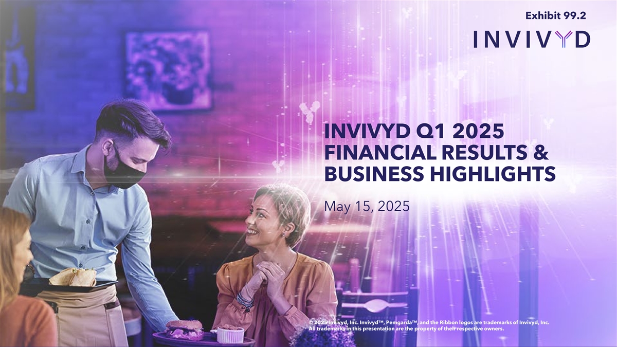 Exhibit 99.2 INVIVYD Q1 2025 FINANCIAL RESULTS & BUSINESS HIGHLIGHTS May 15, 2025 © 2025 Invivyd, Inc. Invivyd , Pemgarda , and the Ribbon logos are trademarks of Invivyd, Inc. All trademarks in this presentation are the property of their respective owners.