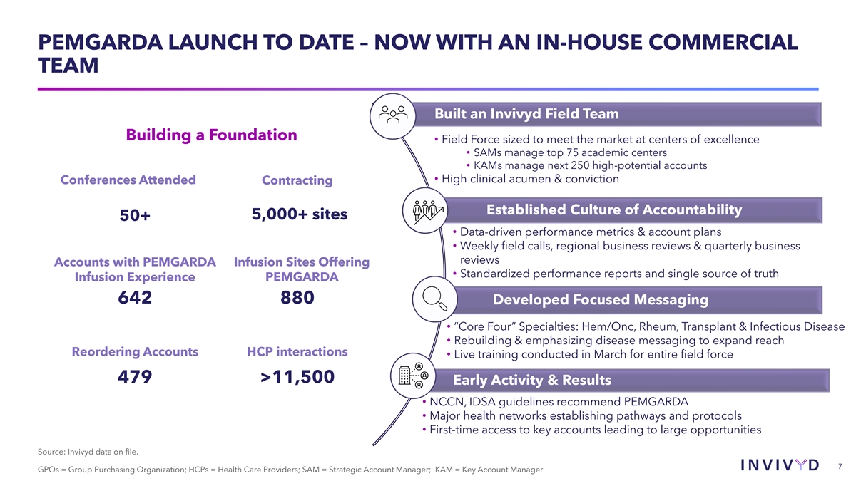 | | PEMGARDA (pemivibart) uptake continues to grow among healthcare providers caring for immunocompromised patients, supported by Invivyds in-house sales force and expanded field presence across key specialties. |
