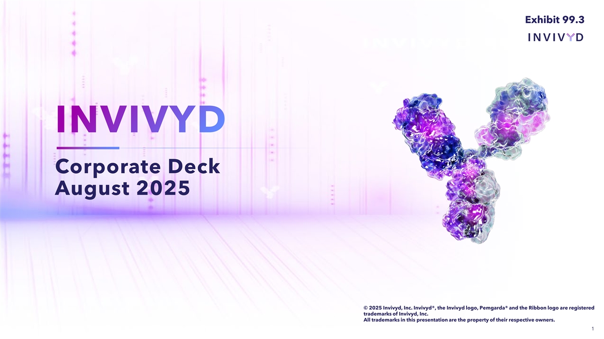 Exhibit 99.3 Corporate Deck August 2025 © 2025 Invivyd, Inc. Invivyd®, the Invivyd logo, Pemgarda® and the Ribbon logo are registered trademarks of Invivyd, Inc. All trademarks in this presentation are the property of their respective owners. 1